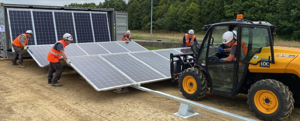 LESENS EREA a équipé, pour le compte de VINCI Autoroutes, l’aire de Trémentines sur A87 de bornes de recharge rapides alimentées par une solution solaire mobile de 75kWc avec un container de stockage d’une capacité de 330 kWh !